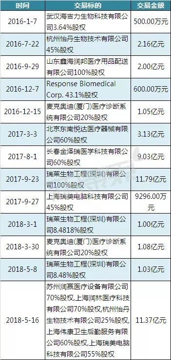 2016-2018年潤(rùn)達(dá)醫(yī)療并購(gòu)情況