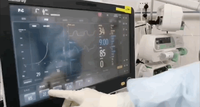 呼吸治療師正在調(diào)節(jié)呼吸機(jī)運(yùn)行參數(shù)
